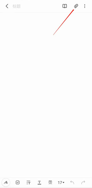 新建笔记后,点击右上角回形针形状的附件按钮。