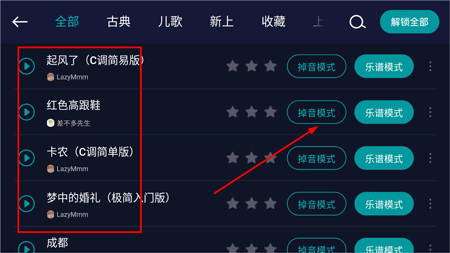 曲库中每首乐曲提供跟弹、自由弹、慢速练习等多种模式,适应不同阶段训练目标。