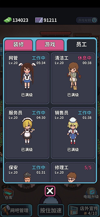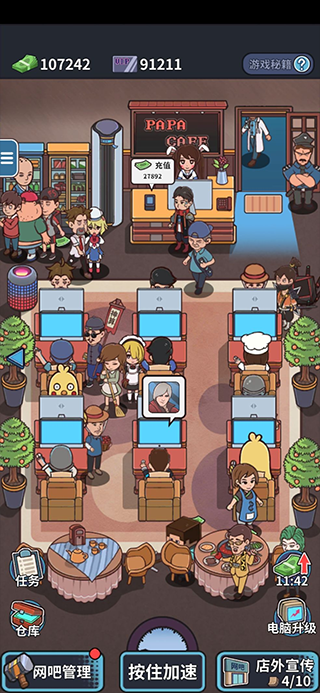 经营节奏由玩家自主定义。偏爱沉浸感者可深耕PC区,亲自调试每台机器的散热与系统优化;倾向轻松体验者可侧重主题包间运营,通过氛围营造提升客单价。