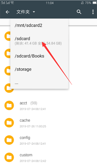 点击左上角“文件夹”,唤出存储路径选择菜单。