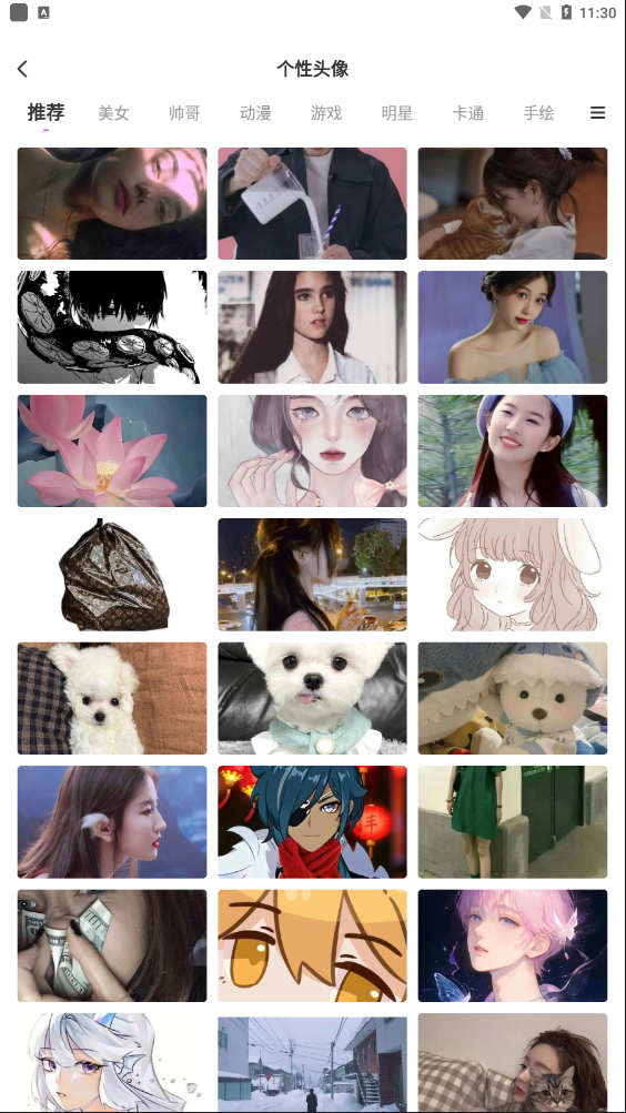右上角图标即为头像专区入口,点击进入后可按风格筛选,支持一键适配微信、QQ等社交平台头像尺寸。
