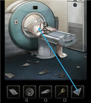 在2011病房用石块击碎镜面,拾取地上散落的锋利玻璃片,返回检查室划开特定位置的遮挡层。