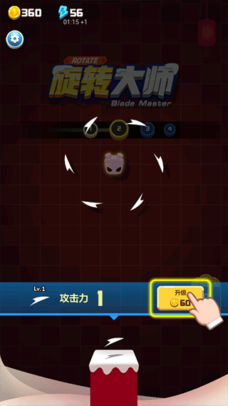 在升级界面中可提升攻击力、旋转速度、刀锋耐久等核心参数,让后续关卡更从容应对。