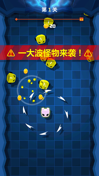 敌人从屏幕边缘持续涌来,移动轨迹多变,要求玩家时刻关注四周动态,及时调整刀锋位置。