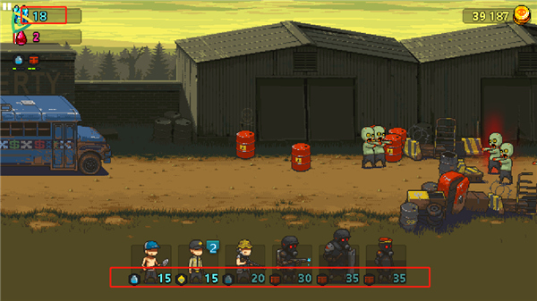 击杀僵尸会随机掉落勇气点,及时点击拾取,让兵力补充形成良性循环。