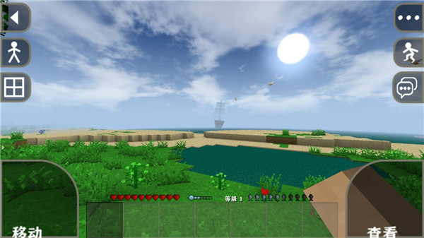 移动依靠左下区域滑动控制,建筑模式下长按目标方块即可放置或拆除。右上角眼睛图标轻触一次切换视角,二次点击锁定仰角,便于搭建多层结构。人物头像旁显示实时生命值、饱食度与体温,点击头像展开详细状态面板,查看负重、装备耐久与已解锁配方。