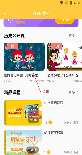 用户可在直播或视频专区观看适合孩子学习的内容;