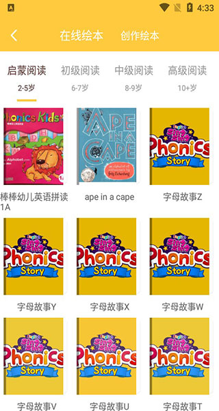 根据孩子的年龄或兴趣类别筛选合适的绘本,点击即可开始阅读;