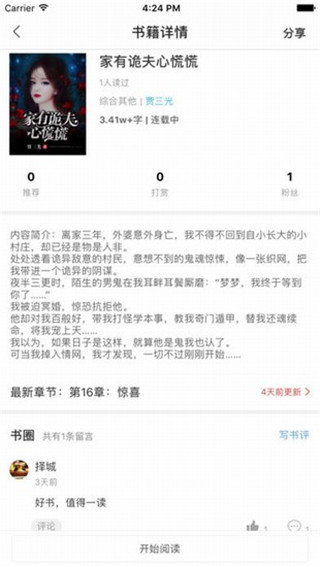 点击书籍封面进入详情页,选择“开始阅读”即可进入阅读界面。