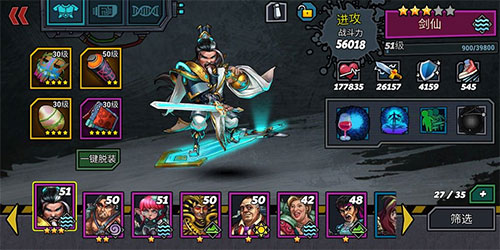 游戏融合卡牌收集与挂机养成两大核心玩法,英雄品质分为白、绿、蓝、紫、橙、红六档。