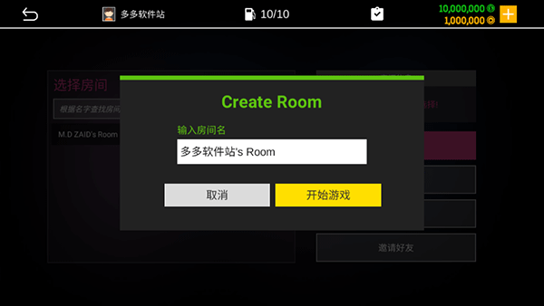 设置房间名称后,告知好友在游戏内输入该名称加入房间。