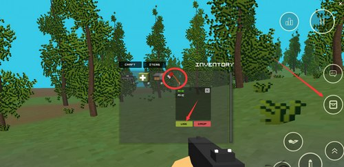 先在背包中找到斧头,点击并选择“Use”按钮装备该工具。