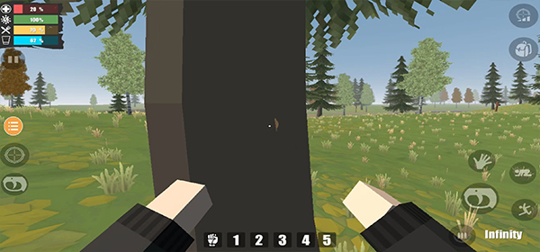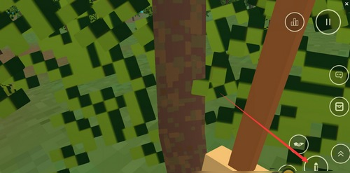 靠近任意一棵树,点击右下角中间的攻击按钮开始砍伐。