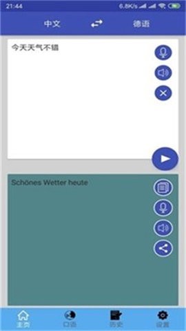 用户可直接在主界面输入中文或德语文本,系统自动识别源语言。