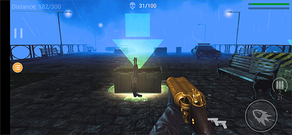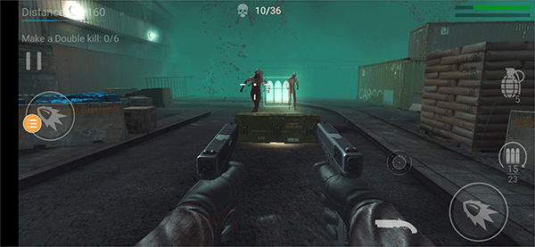 利用手中武器消灭来袭僵尸,若弹药耗尽可移动至途中出现的补给点补充手枪子弹
