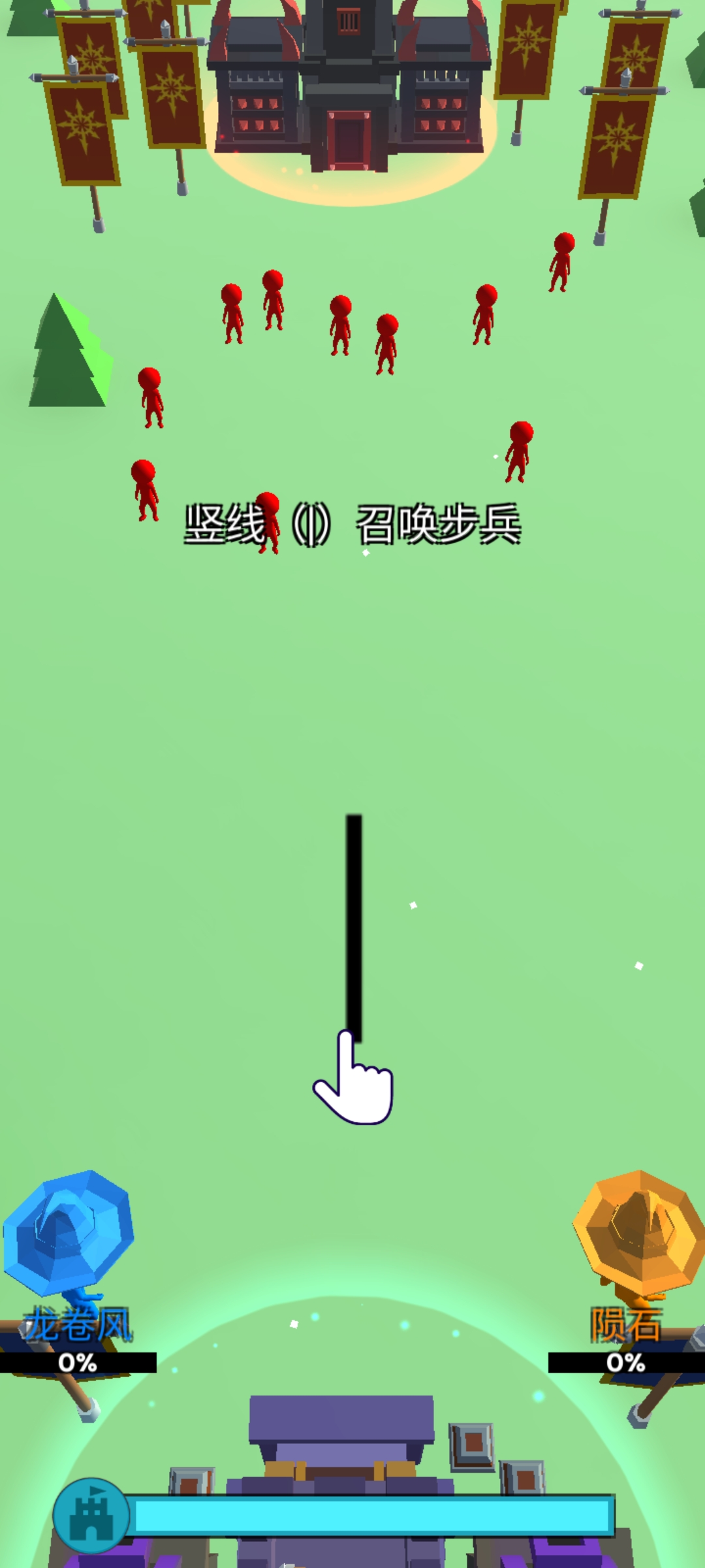 在屏幕上绘制不同形状的线条,可召唤出相应兵种,例如竖线代表步兵。