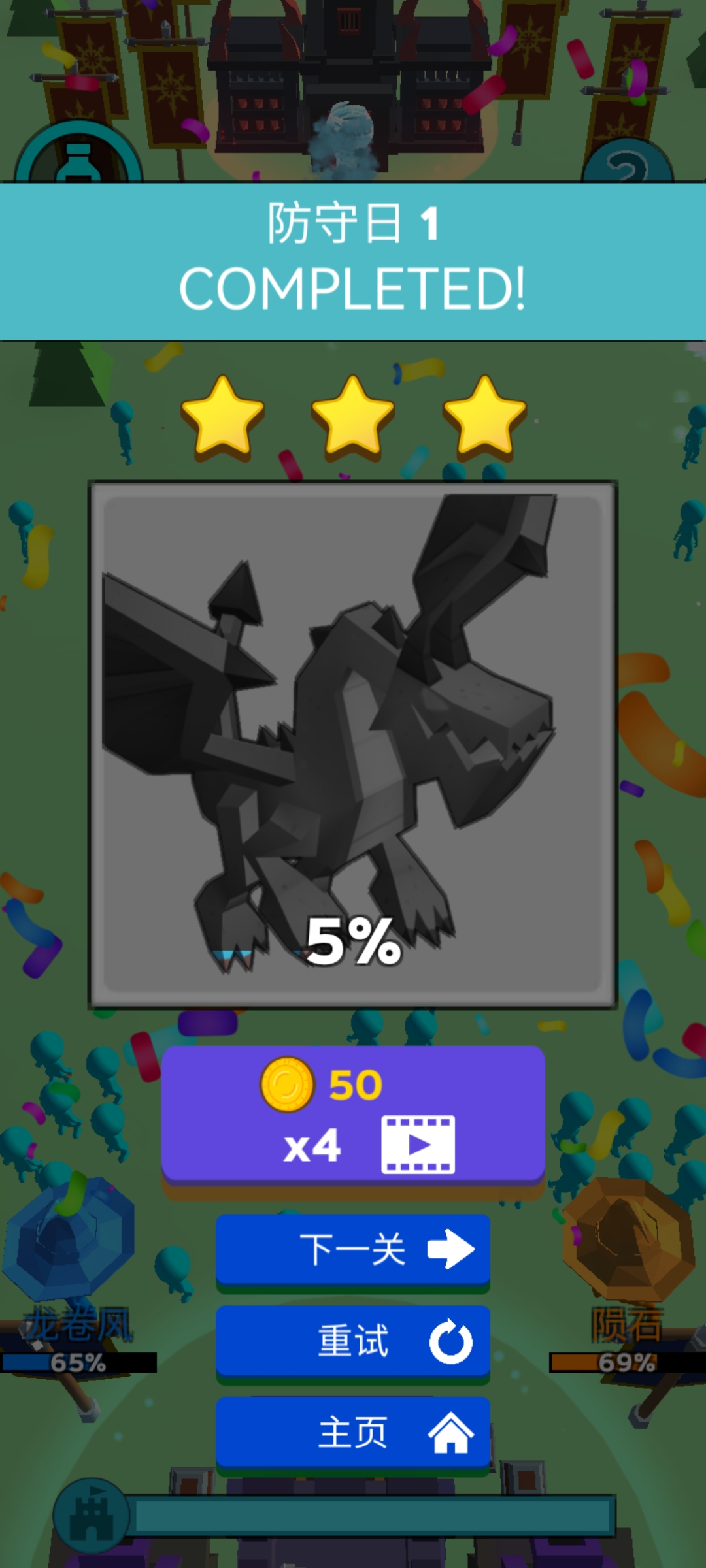 成功守住己方城堡并消灭全部敌人,即可赢得胜利,解锁后续关卡。