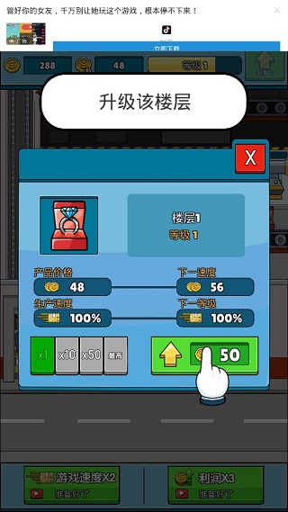 正式进入游戏后,可点击左下角将游戏速度调整为×2,加快生产节奏并提升利润产出。