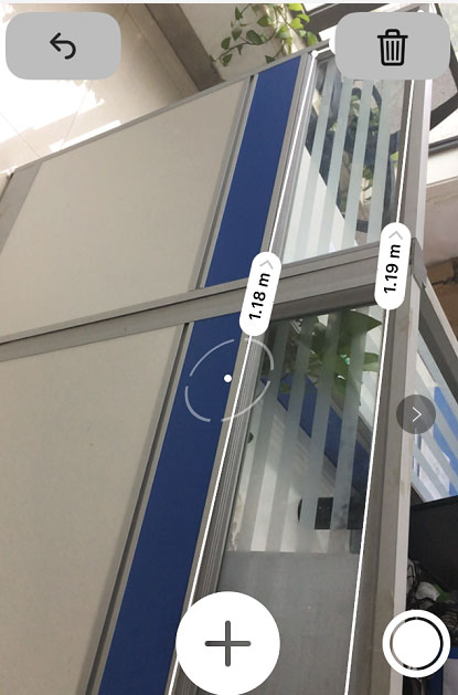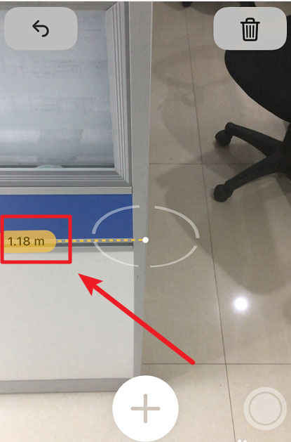 标记完成后缓慢移动设备,屏幕上会拉出一条动态测量线,上方实时显示距离数值,到达终点时再次点击“+”号完成测量。