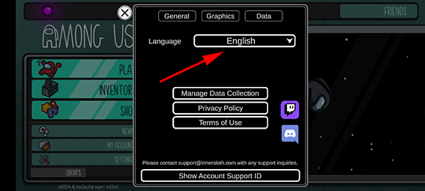 在语言设置区域,默认显示为英文。点击“Language”后,会弹出更多语言选项。
