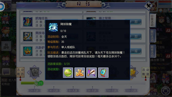 建议在使用双倍点数后再进行任务,可使收益翻倍,每日最多击杀30个妖魔。