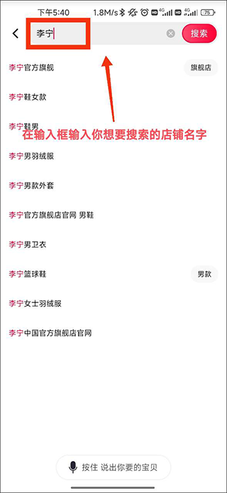 在输入框中键入目标店铺名称。