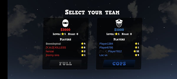 3. 成功进入房间后,根据个人喜好选择加入“警察”或“强盗”阵营。