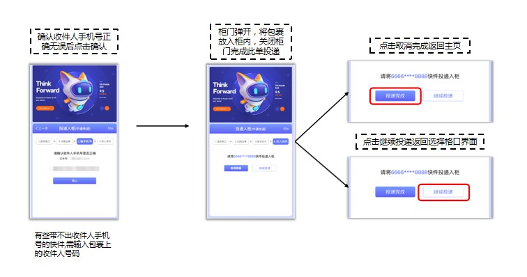 柜门随即开启,取出包裹后关闭柜门,即完成整个取件流程。