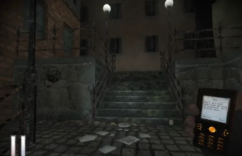 广场中心十点钟方位的楼梯处藏有一张密码纸条,左侧拐角同样放置着另一份密码提示