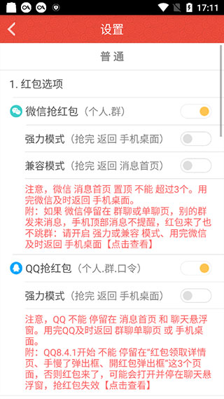 教程提醒:遇到抢红包异常时,建议查阅内置帮助教程,每次版本更新均会同步完善教程内容。