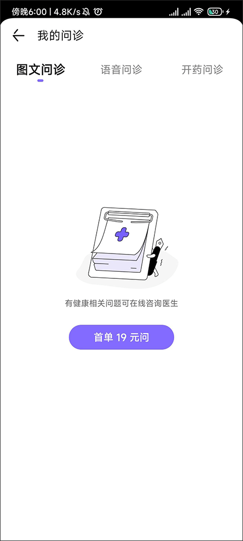在“问医生”界面右上角点击“我的问诊”,进入个人问诊中心。