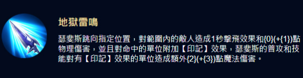 瑟斐斯跃向空中,对指定区域猛击,造成370(+242)点物理伤害并短暂击飞敌人。