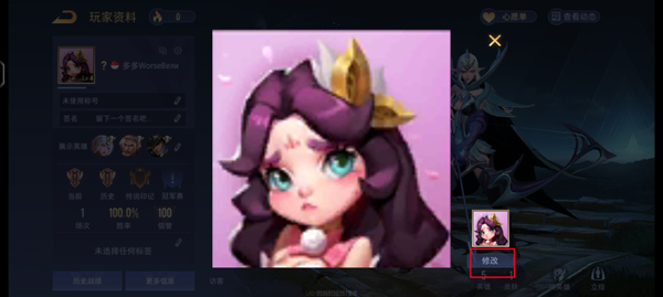 在头像预览界面,点击右下角“修改”按钮。