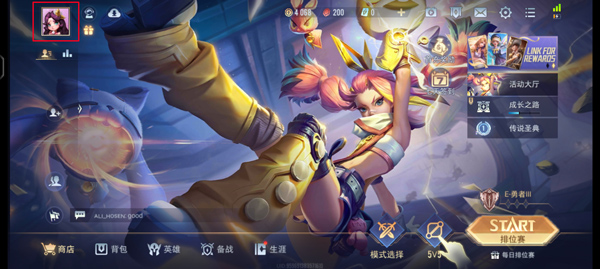 打开游戏后,点击左上角个人头像进入资料页面。