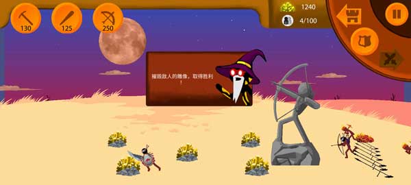 成功摧毁敌方雕像即宣告胜利。随着关卡推进,更多兵种陆续解锁,需灵活调配阵型,巧妙运用战术以加快制胜节奏。