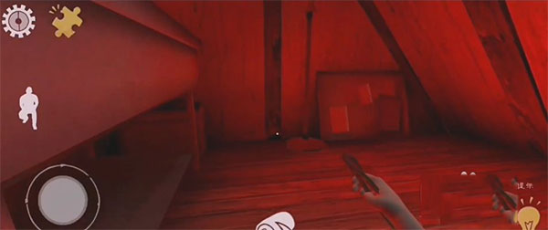 4. 正式进入第一人称操作模式:左侧虚拟摇杆控制移动方向,右侧按钮负责互动与拾取;