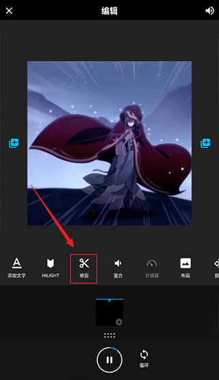 4. 在编辑页面中,点击【修剪】选项: