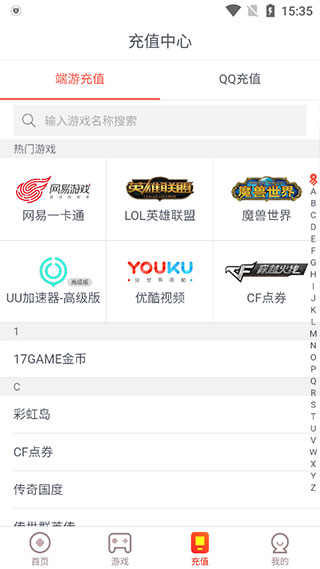 4. 充值页面不仅覆盖网易全系游戏,还支持其他主流游戏充值。用户可通过首字母快速检索游戏,并享受限时礼包与充值优惠。