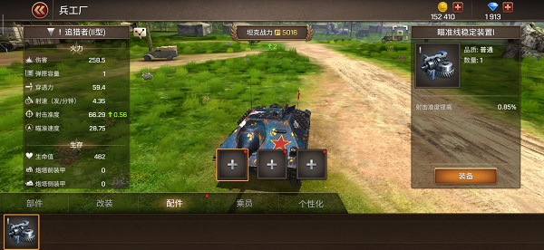 在《坦克争锋》中,每辆坦克最多可装备3个配件,用以针对性提升火力、机动、防护等关键属性。不同配件组合能塑造出风格迥异的战术战车,玩家可根据战场需求自由搭配。