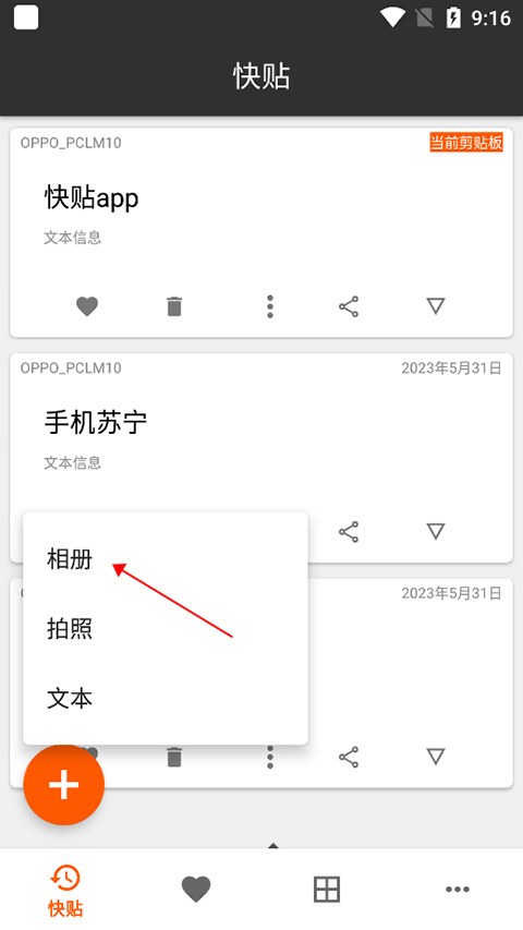 1. 打开手机端快贴app,点击右下角【+】号,在弹出选项中选择【相片】或【拍照】。