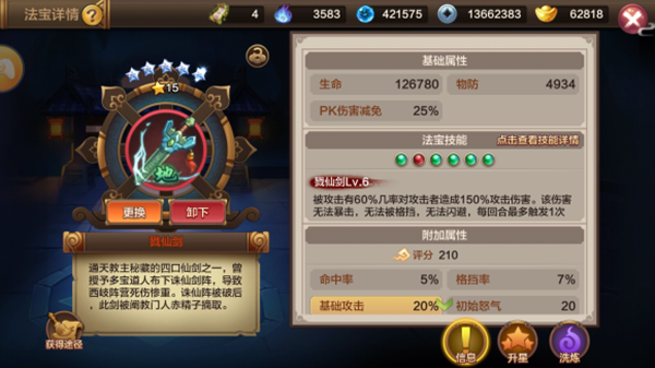 法宝系统分为天、地、玄、黄四类,各可佩戴一件。玩家可在宝物商店预览属性,但切勿盲目购买。多数法宝可通过伏魔副本稳定获取,随着等级提升,法宝储备自然充裕。前期建议仅考虑黄品与橙品法宝,其余品质性价比偏低。尤其注意,元宝应优先用于限时活动,而非兑换普通法宝或魔精,避免资源浪费。