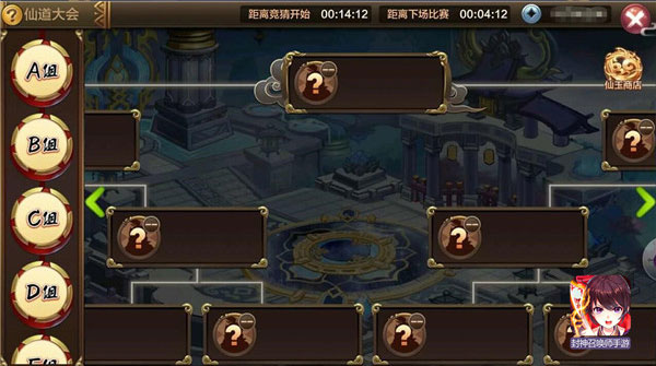 八强名单确定后,30级以上玩家可参与竞猜押注,每注消耗100万铜钱,获500法宝精华,最多五注。押中返还三倍铜钱,失败则不予退还。各赛区冠军将在主城立像,雕像标注专属称号。全服玩家可每日膜拜雕像领取奖励,被膜拜者亦能获得额外福利。