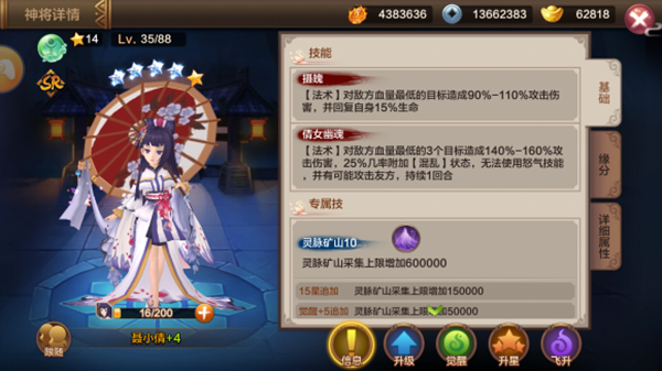 初始获取的SR角色聂小倩值得优先培养。每位神将拥有两个技能,通常称为小招与大招。