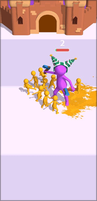 尽可能多地撞击白色小人,将他们纳入自己的队伍,壮大整体实力。