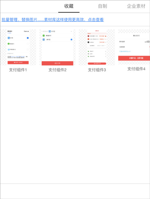 内置海量可复用资源,涵盖组件、图标、图片等多种素材类型。素材广场提供丰富模板,开箱即用,有效降低设计门槛,激发创意灵感。