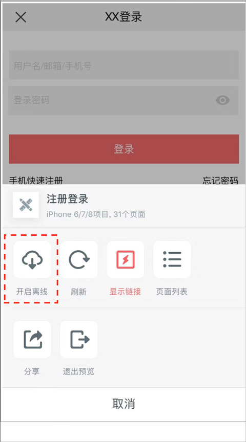 开启离线模式后,即使无网络连接也能流畅演示原型内容。