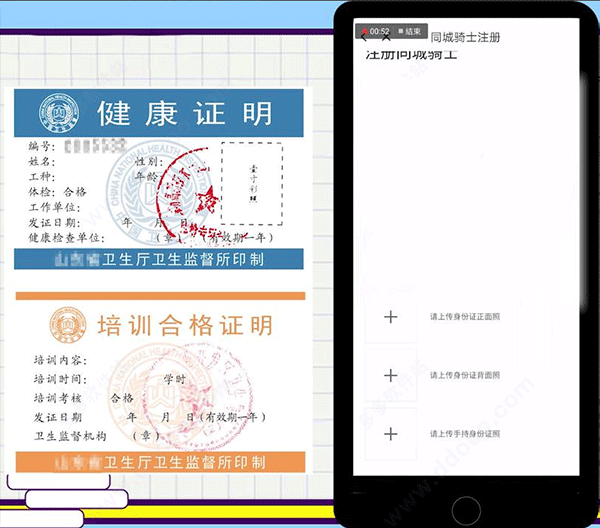 健康证明可前往当地三甲医院办理,提交后等待平台审核通过即可上岗。