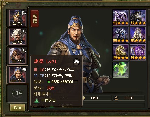 慢节奏玩家可依次招募庞德、徐晃、夏侯惇、孙策、甘宁、吕蒙、祝融,逐步替换旧将,体验多样阵容;快节奏玩家则可跳过夏侯渊与甘宁,直取吕蒙组成四将体系,聚焦核心战力,提升发育效率。