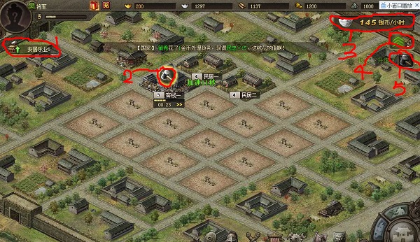 资源系统与任务系统紧密联动。银币用于招募、装备与建筑;木材支撑建筑升级;粮食维系军队生存;镔铁强化兵器性能。资源主要通过民居、木场、农田、矿场产出,亦可通过政务、祭祀、集市等途径补充。