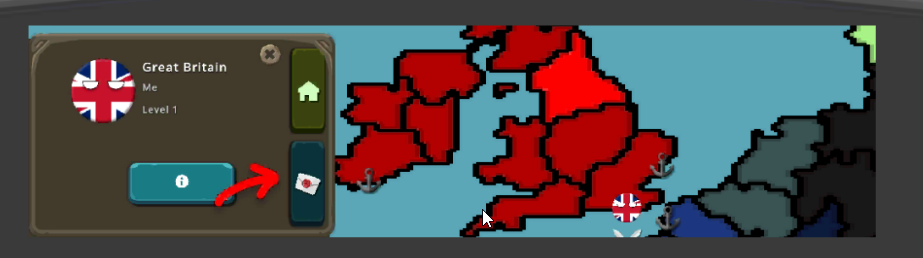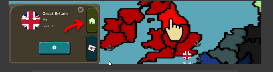 进入他国界面,需先点击其友好领土,再点选房屋图标即可访问。
